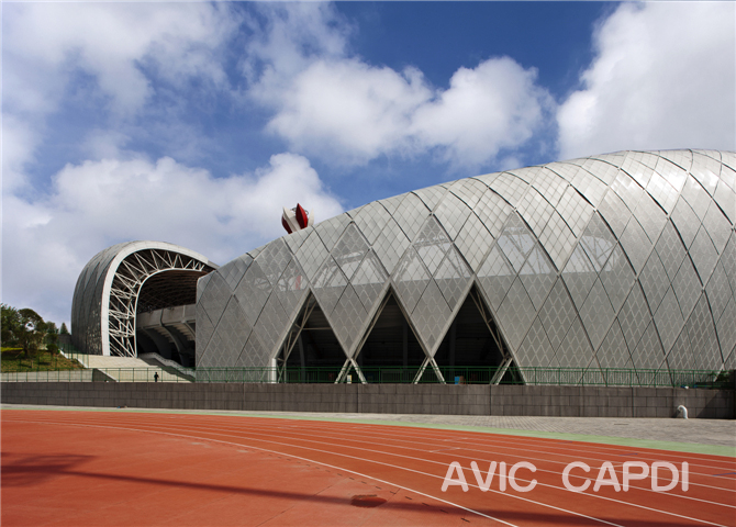 Floor Area: 53,151㎡ Completion Date: Y 2009 Notes of Interest: This 51,636 seated sports centre is designed with enclosed type spectator terrace, which is constructed along the mountain shape at east with a 6-story functional rooms at west. VIP area, athlete area, media area, public body-building area, supporting technical rooms are furnished in this facility. The maximum height of the roof cover is 52.25m. |