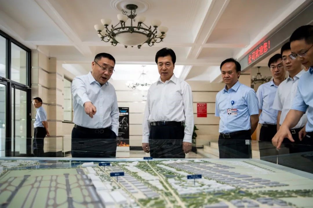 ▲ 任玉琨參觀民航機場展示沙盤